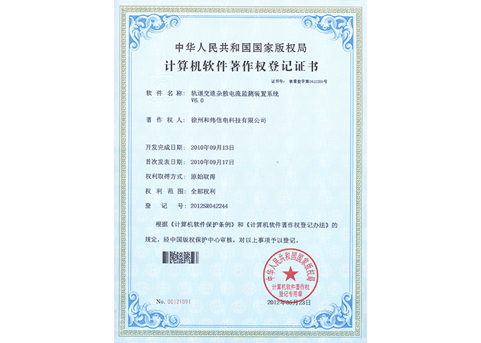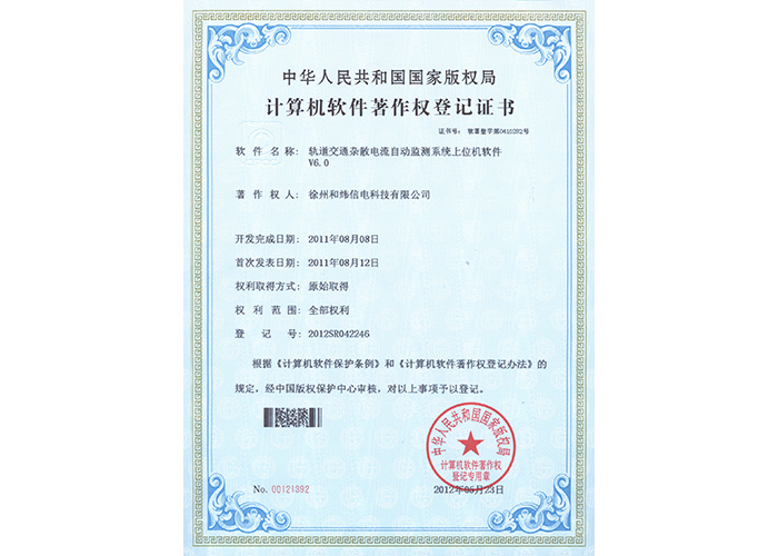 2012SR042246 軌道交通雜散電流自動(dòng)監(jiān)測系統(tǒng)上位機(jī)軟件V6.0